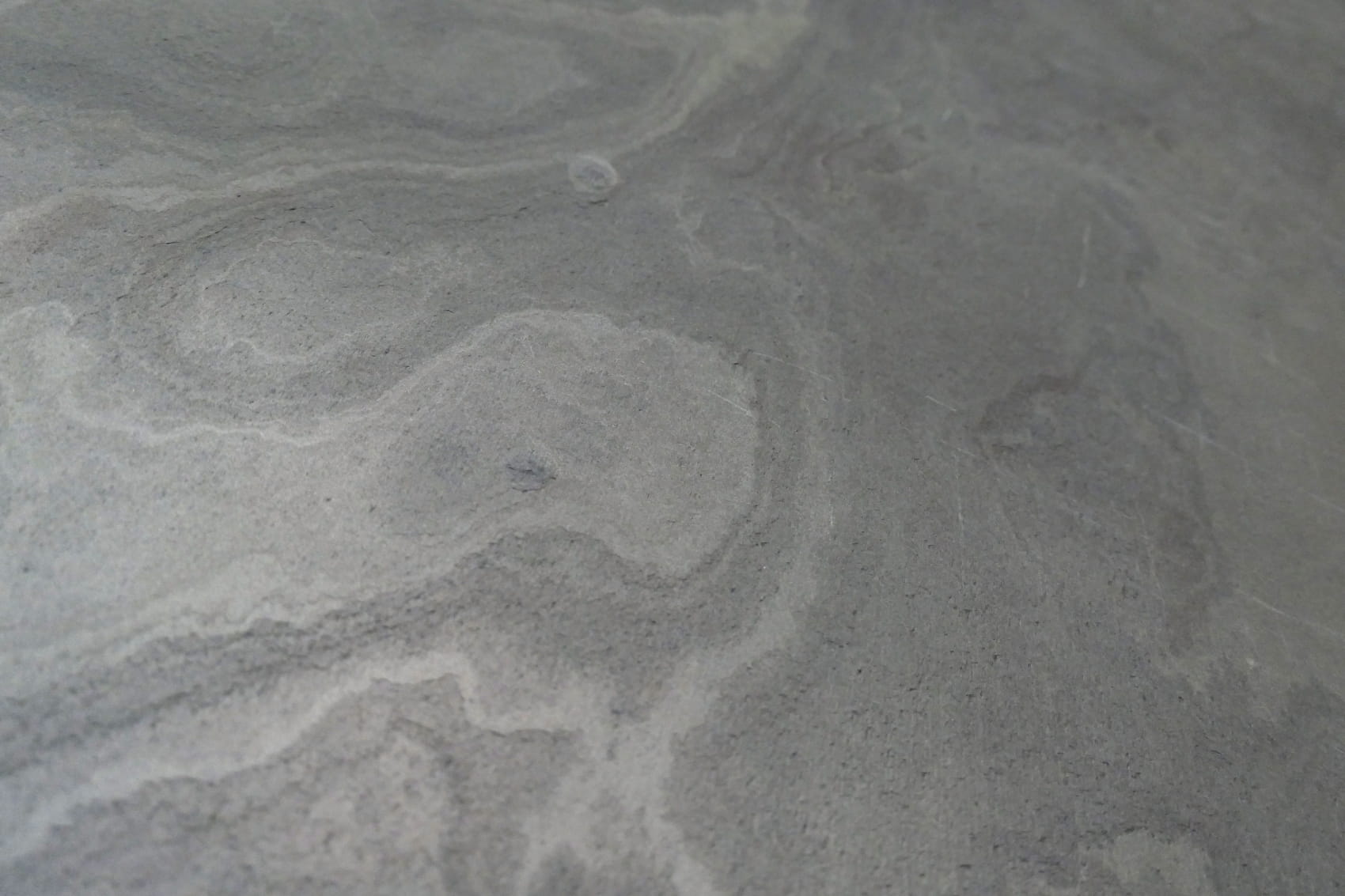 Fornir kamienny CALIFORNIA GREY to ciemny dekor z szarawym kolorem bazowym i częściowo eliptycznymi strukturami w tym samym spektrum kolorystycznym.