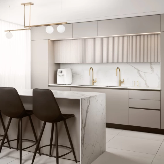 Spiek Kwarcowy Calacatta Prestigio Poler 324x162x1,2 cm